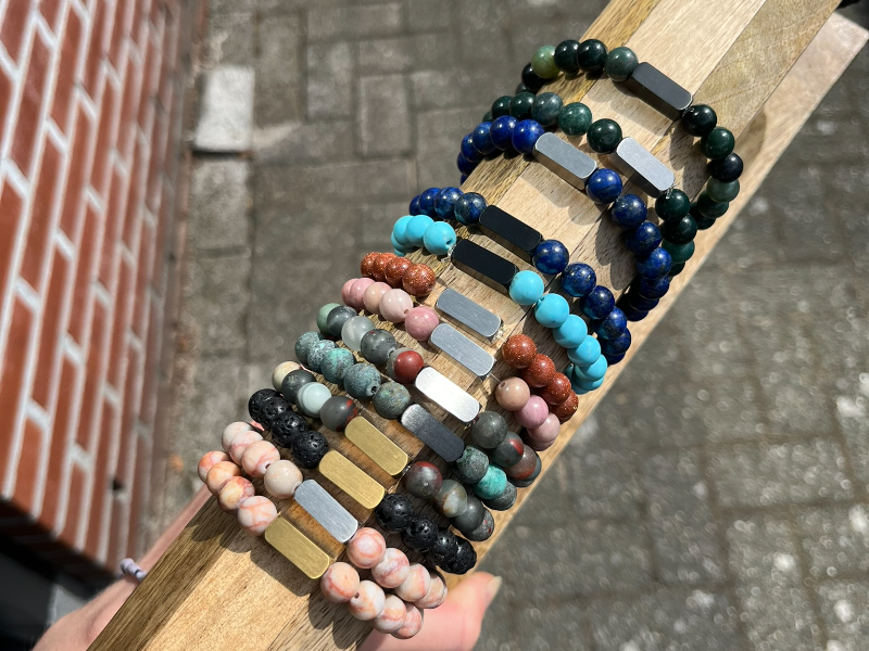 The result is a chain that combines the structure of metal with the beauty and individuality of natural stones.