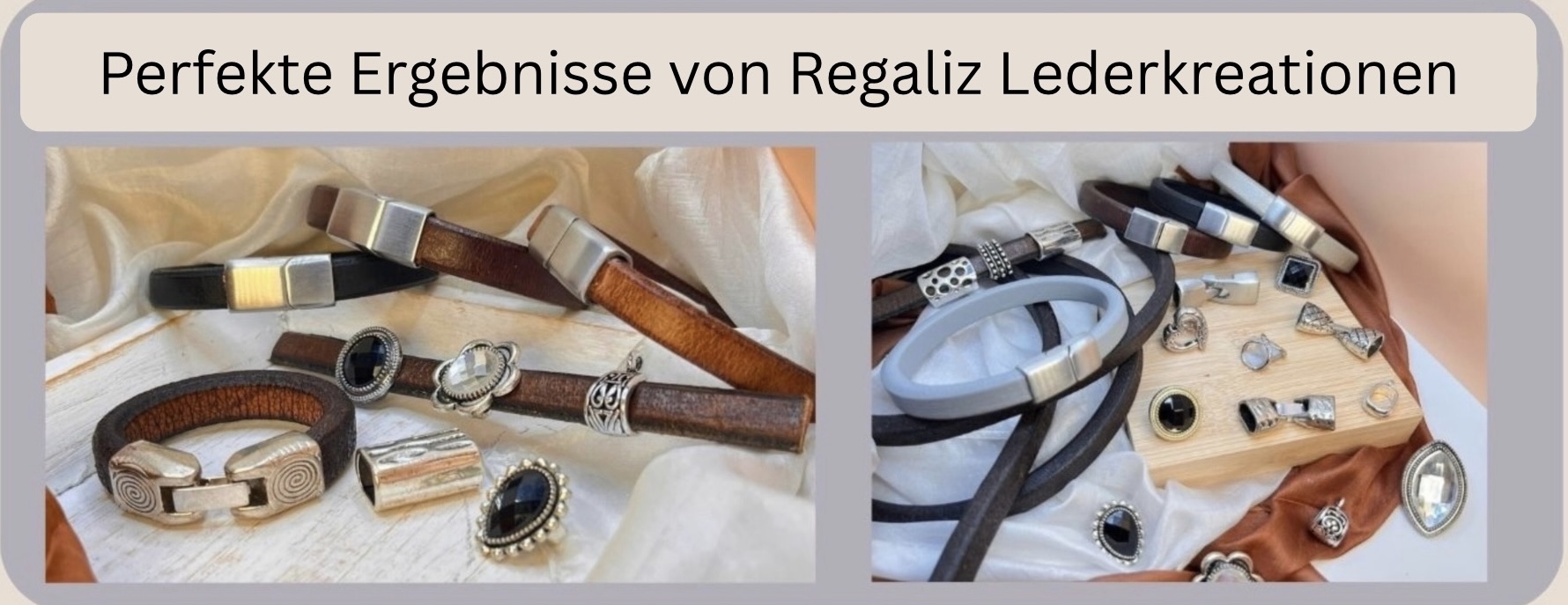 Unsere Regaliz-Lederkomponenten sind eine wunderschöne Ergänzung für Armbänder, Accessoires und Bekleidung. Möchten Sie Ihren eigenen Schmuck entwerfen? Entdecken Sie unsere Magnetverschlüsse und Verbindungsstücke für einzigartige Verschlüsse. Suchen Sie nach einem besonderen Hingucker für Ihre schlichten Kordeln? Unsere Schieber, Perlen und Endkappen setzen farbliche Akzente.