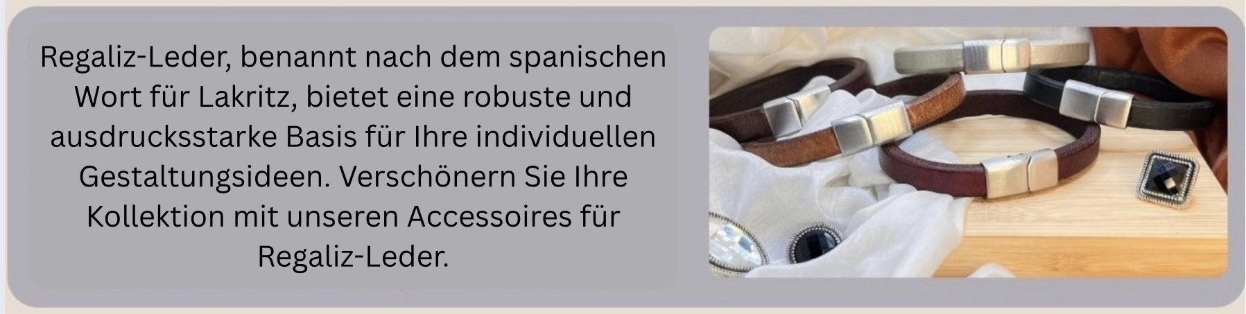 Regaliz Leder ist ein hochwertiges, dickes Rindsleder, ideal für die Herstellung von Armbändern, Halsketten und anderen Lederaccessoires. Bei Sun Enterprises finden Sie eine große Auswahl an Regaliz-Lederkordeln und -Komponenten im Großhandel, mit denen Sie stilvolle und langlebige Schmuckstücke kreieren können, die sich von der Masse abheben.