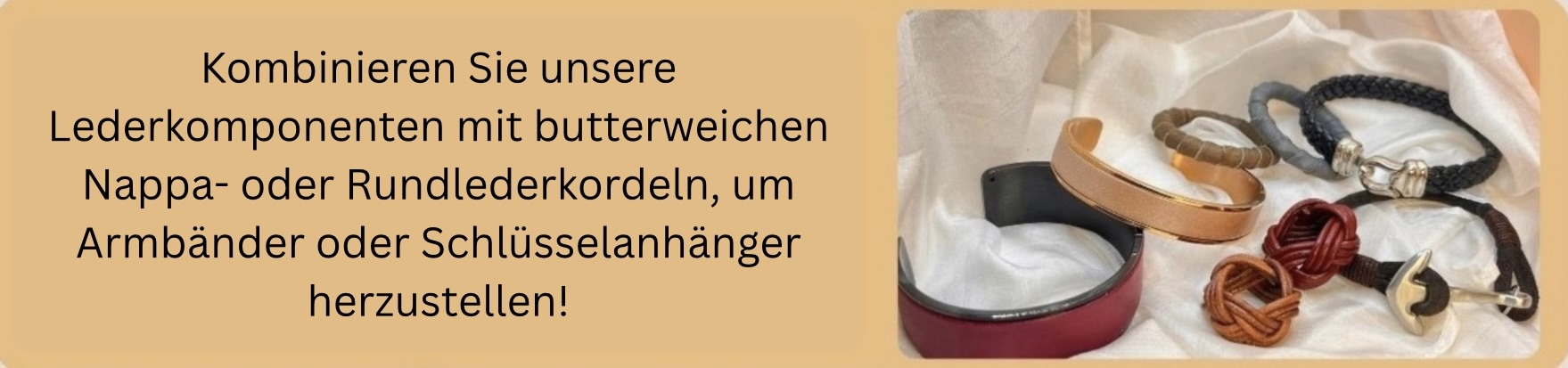 Entdecken Sie unser komplettes Sortiment an Lederschmuckzubehör und -komponenten, um langlebige und stilvolle Schmuckstücke zu kreieren, die sich von der Masse abheben. Ob Sie Modeaccessoires oder individuellen Lederschmuck entwerfen – unsere Komponenten bieten sowohl Funktionalität als auch raffiniertes Design.