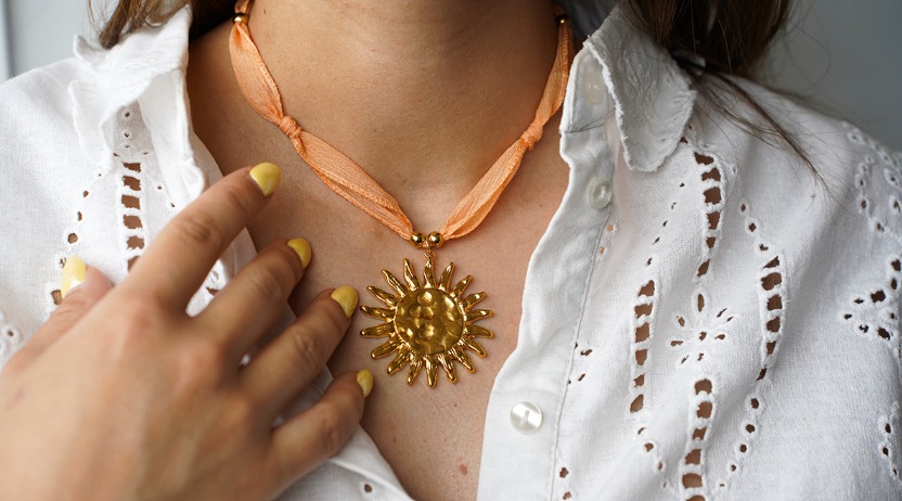Silk allows jewellery design to move fluidly between simplicity and expression. In necklaces, it becomes a visible and defining element: minimalist silk cords emphasise colour and lightness, while pendants gain a softer, more contemporary feel when silk replaces traditional metal chains. Wider silk ribbons and layered strands introduce volume, texture, and movement, making silk necklaces particularly suitable for both everyday elegance and more artistic collections.