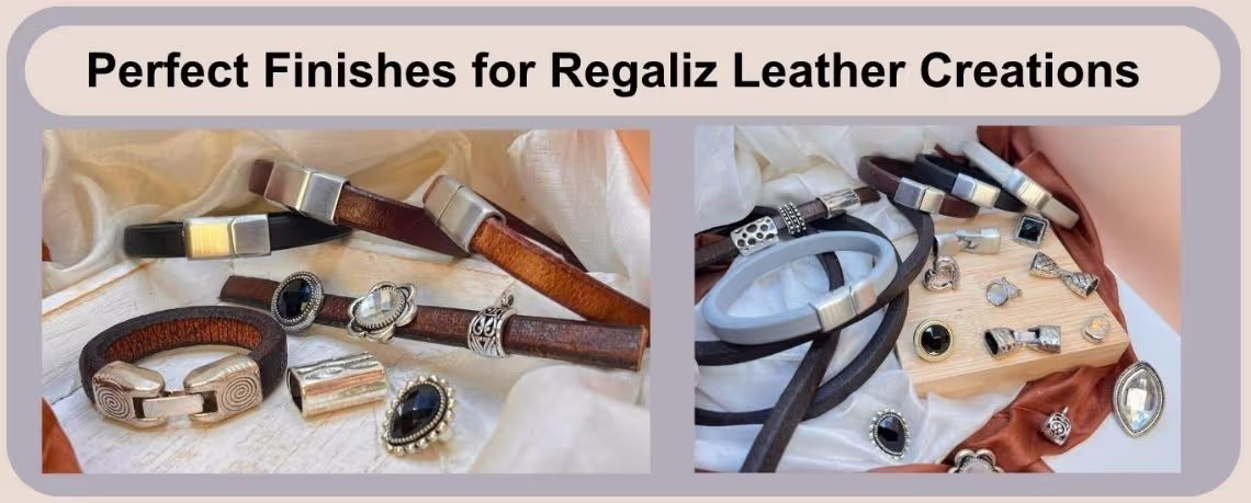 Regaliz leather is a premium, thick cowhide leather ideal for crafting bracelets, necklaces, and other leather accessories. At Sun Enterprises, we offer a complete selection of wholesale Regaliz leather cords and components to help you design stylish, durable pieces that stand out.