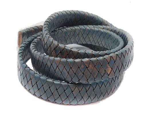 Ambiente Oval Braided Leather Cord - 15.5x4.5mm - Vintage Ligh Blue