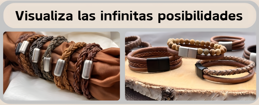 Combina estos cordones de cuero con cuentas de piedras preciosas o cierres deslizantes para crear piezas únicas, o bien, echa un vistazo a nuestras pulseras de cuero hechas a mano para hombre y mujer con cierres magnéticos que combinan elegancia informal y artesanía de calidad, todo a precios competitivos.