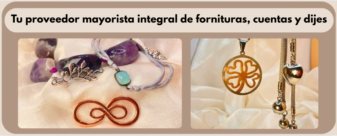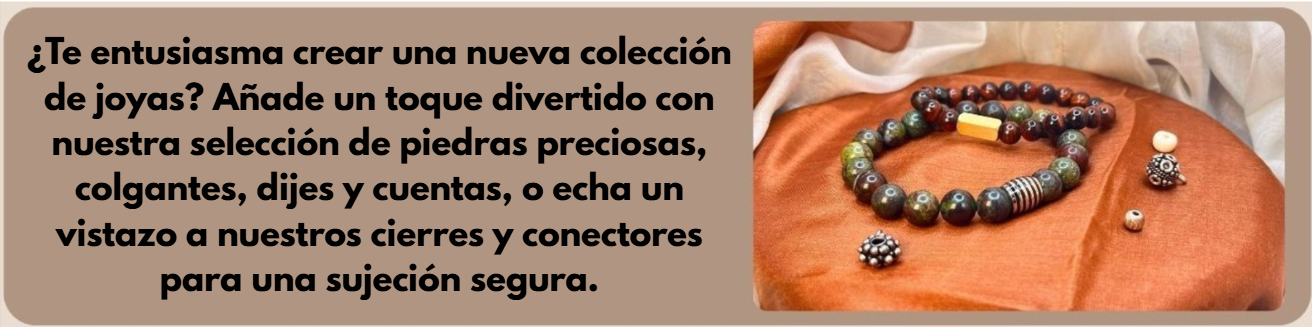 Cada uno de nuestros fornituras, cuentas y dijes está elaborado artesanalmente para satisfacer las necesidades de fabricantes, diseñadores y mayoristas de joyería de todo el mundo. Nuestra amplia colección se puede combinar con nuestras cadenas de acero inoxidable y collares listos para usar y pulseras para crear tus propios diseños, o con nuestros cordones de seda y cintas para crear diseños de joyería profesionales y sencillos.