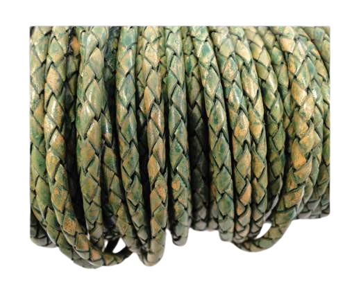 Oslo Round Braided Leather Cord- 5mm-Vintage Green