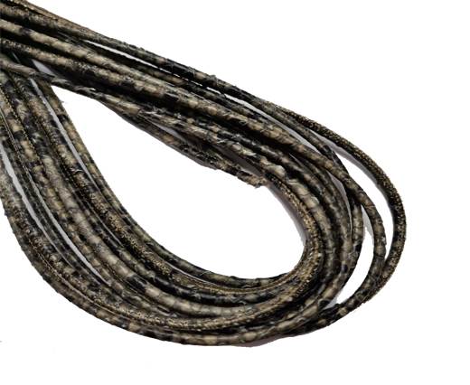 Round Stitched Leather Cord - 3mm - PYTHON STYLE - LIGHT OLIVE