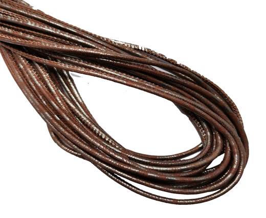 Round Stitched Nappa Leather Cord - 3mm - LAMINA SILVER BROWN