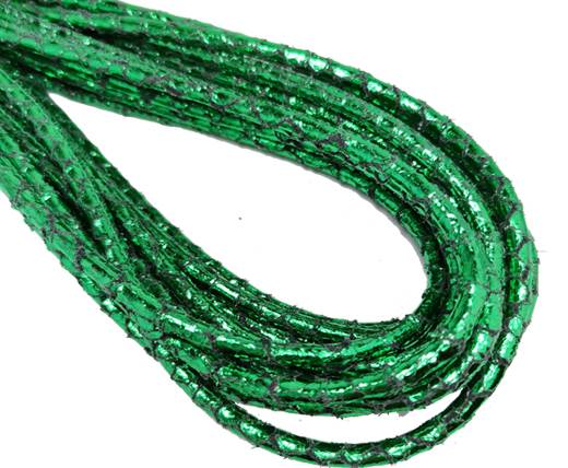 Round Stitched Nappa Leather Cord-4mm-snake style green shiny
