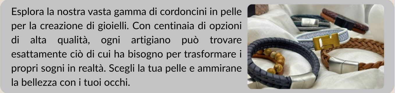 Abbina questi cordoncini in pelle a perline con pietre preziose o chiusure scorrevoli per creare pezzi unici, oppure scopri i nostri bracciali in pelle fatti a mano da uomo e da donna con chiusure magnetiche che fondono eleganza casual e qualità artigianale, il tutto a prezzi competitivi.