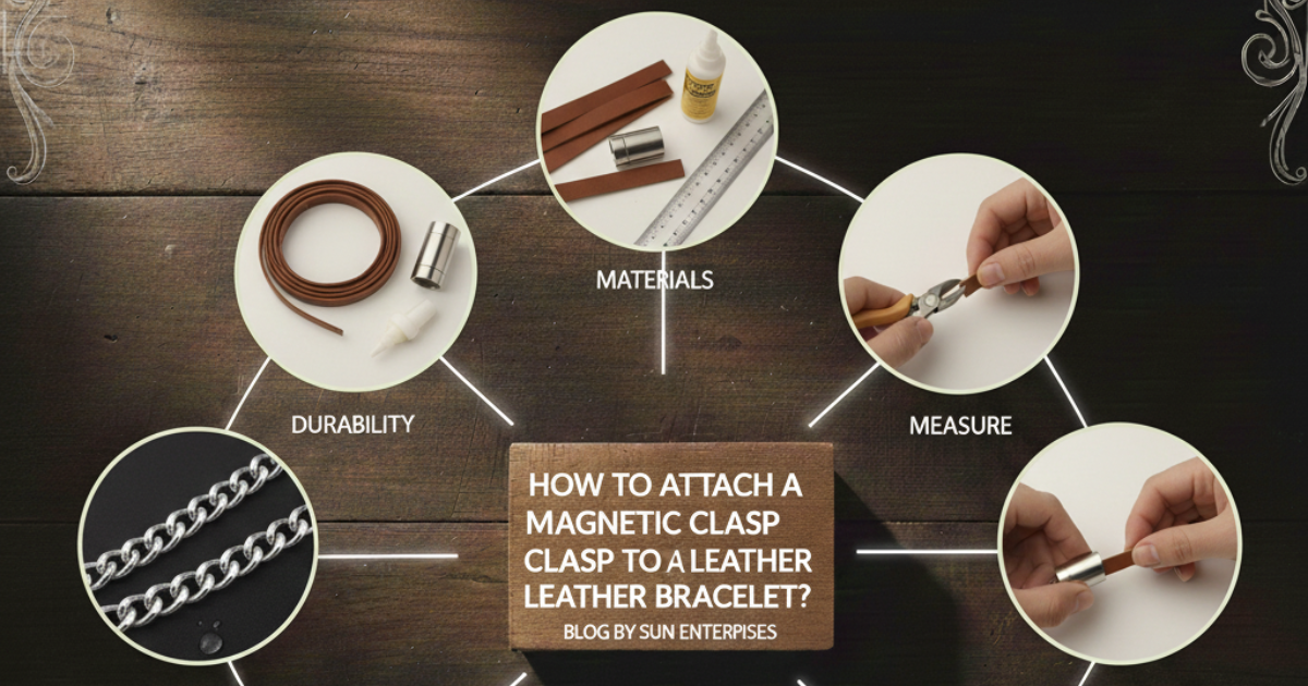 How do you attach a magnetic clasp to a leather bracelet?