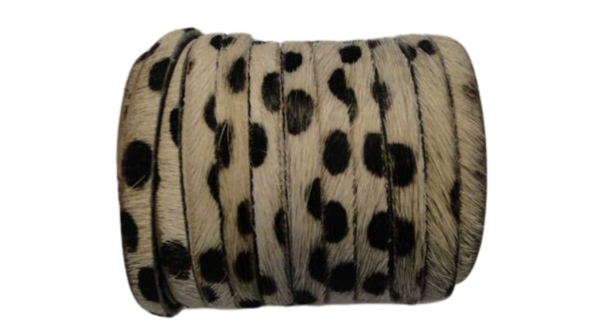 This hair-on style features a flat leather cord with the natural hair left intact, creating a bold, tactile surface with a distinctive visual impact. The short, fine hair adds richness and texture, giving each cord a unique, organic character that stands out in contemporary and bohemian-inspired designs. The cord remains flexible and comfortable to wear, making it well suited for bracelets, necklaces, wraps, and fashion-forward accessories.
