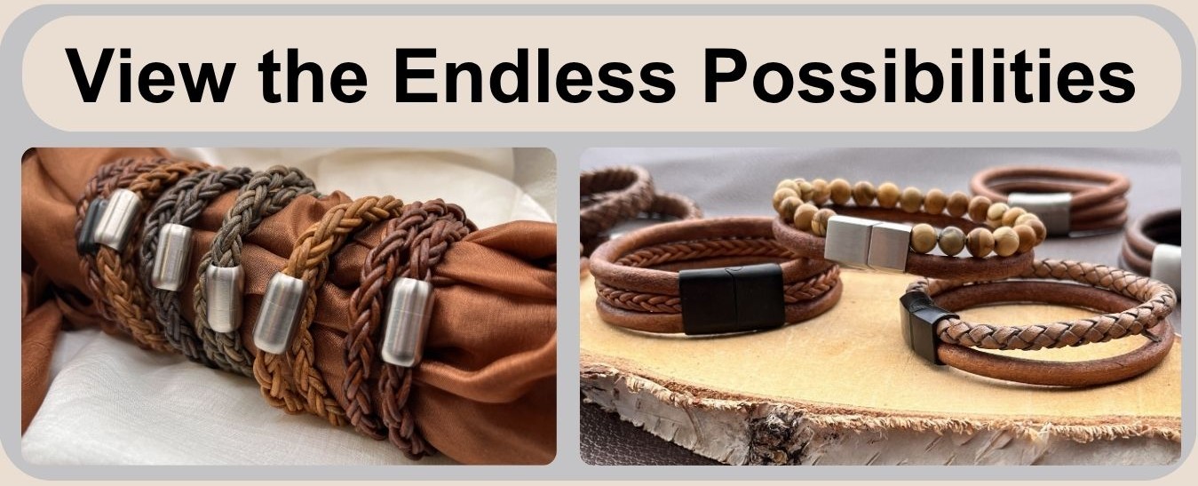 Pair these leather cords with gemstone beads or slider clasps to create unique pieces, or alternatively, check out our handmade men's and women's leather bracelets with magnetic clasps which blend casual elegance with quality craftmanship, all at competitive prices.