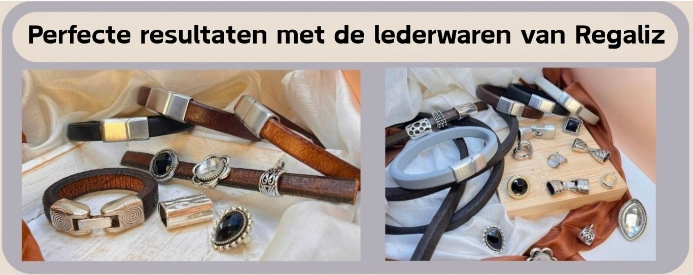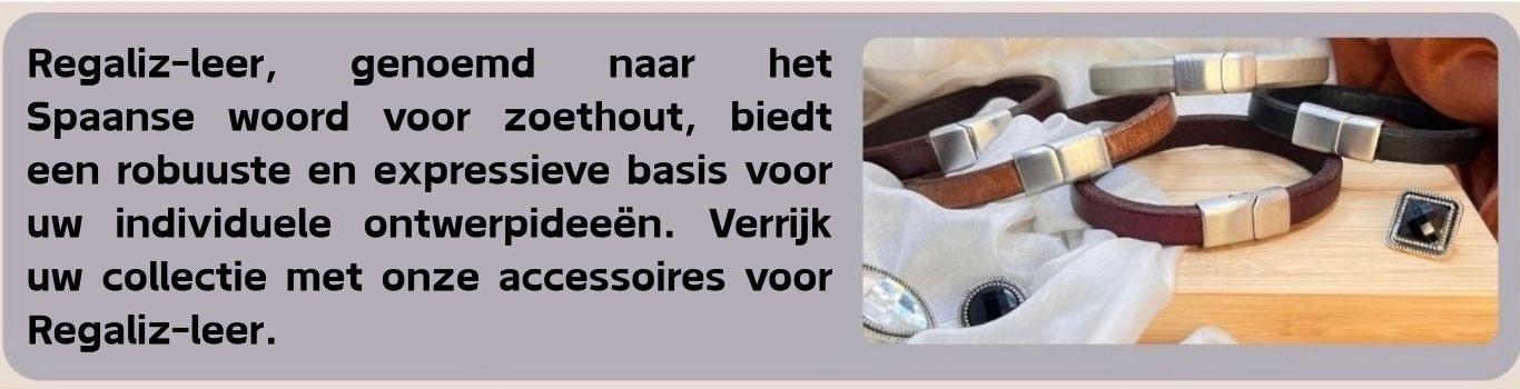Onze Regaliz lederen componenten zijn prachtige toevoegingen aan armbanden, accessoires en kleding. Wilt u uw eigen sieraden maken? Bekijk dan onze magnetische sluitingen en verbindingssluitingen voor unieke sluitingen. Wilt u uw eenvoudige koorden wat opfleuren? Bekijk dan onze schuifjes en kralen, en onze eindkapjes voor een leuk designaccent.