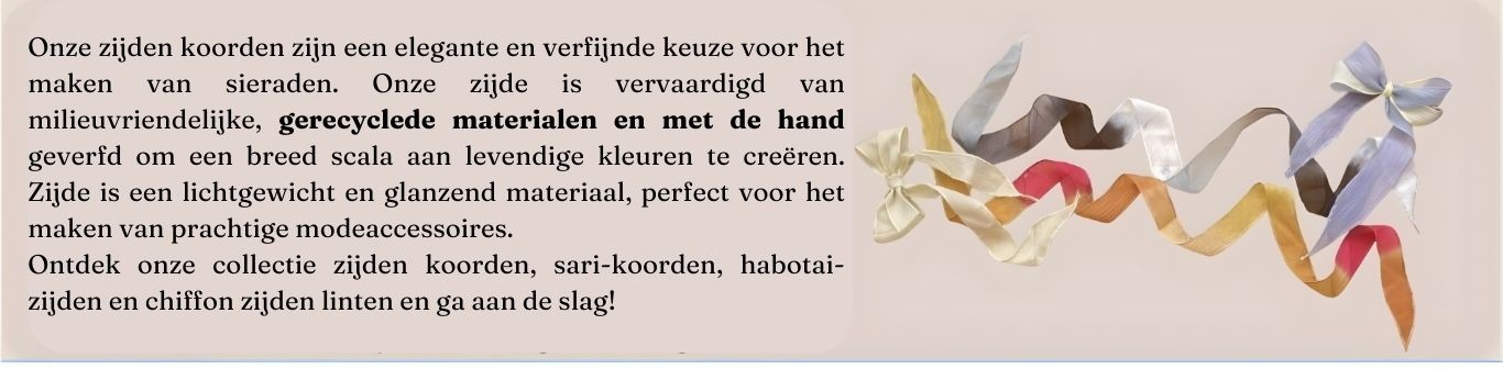 Ontdek onze collectie groothandelszijde en rijgmaterialen, zorgvuldig geselecteerd voor sieradenmakers, ontwerpers en creatieve studio's over de hele wereld. Van sari-zijde en zijden linten totzijden taps, toelopende koorden, kurkkoordenen sieradendraad, ons assortiment combineert kwaliteit, flexibiliteit en prachtige texturen, perfect om een unieke touch aan elk ontwerp toe te voegen.